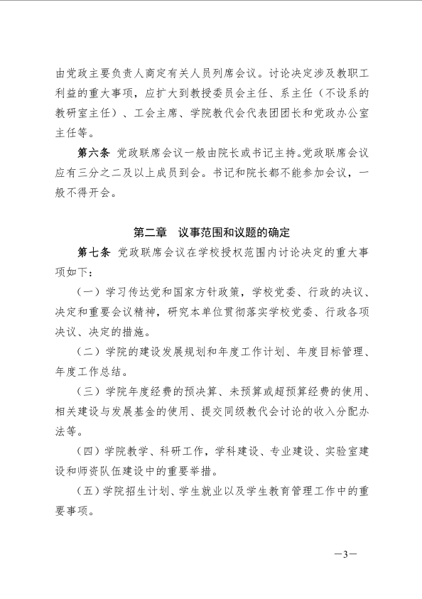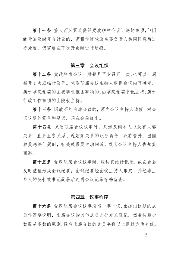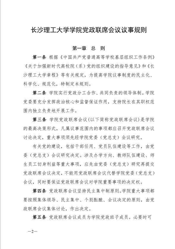 关于印发《长沙理工大学学院党政联席会议议事规则》的通知