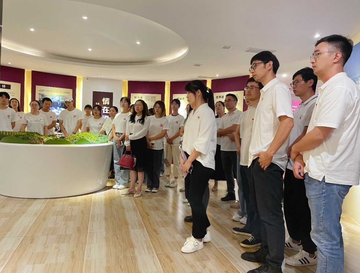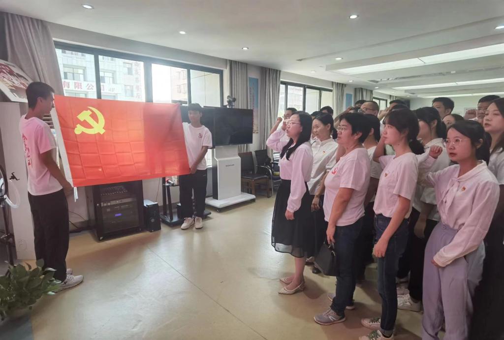 参观结束后,院长程云辉带领大家在党旗下重温入党誓词。掷地有声的宣誓声是对党的庄严承诺,传达了身为共产党员的自豪感和使命感,是对初心使命的进一步坚定,也引导教师党员们永葆政治本色,以更加饱满的热情发挥共产党员的先锋模范作用。
