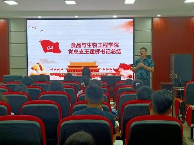 6月19日,长沙理工大学食品与生物工程学院本科生食品党支部在工科三号楼A320举办《习近平谈治国理政》读书班第三次读书分享会。食品学院党总支书记王建辉、党总支副书记练黎旋、专职组织员方碧波和学工办老师胡佳佳等师生近100余人参加此次活动。