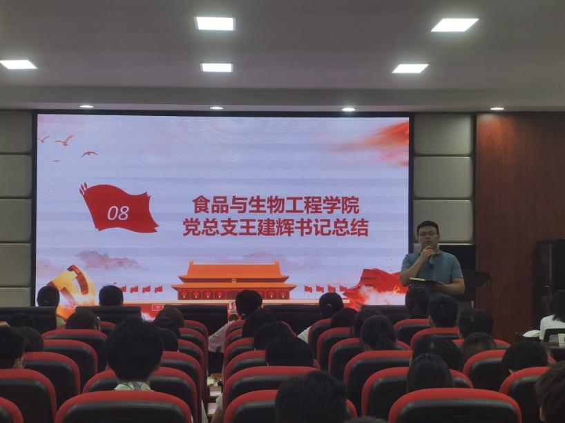 2022年7月1日,长沙理工大学食品与生物工程学院食品本科生党支部在工科三号楼A320举办《习近平谈治国理政》第四次读书分享会。食品学院党总支书记王建辉、学院副院长方芳、许宙、教工党支部代表陈永发和学工办老师胡佳佳等师生近80余人参加此次活动。
