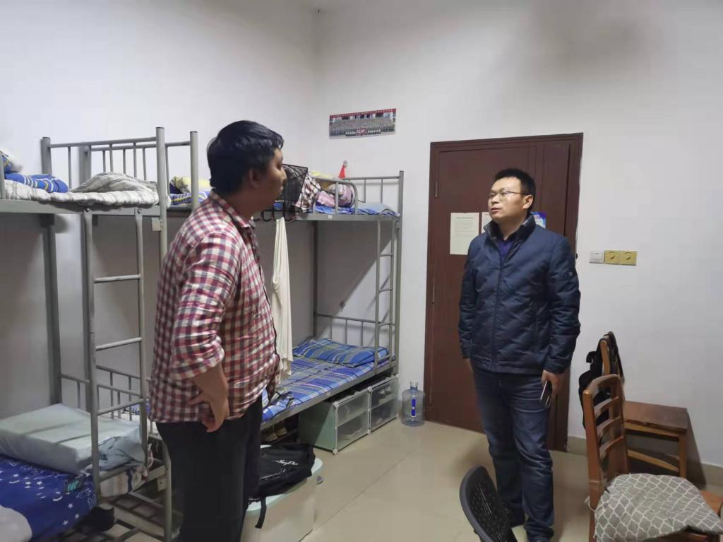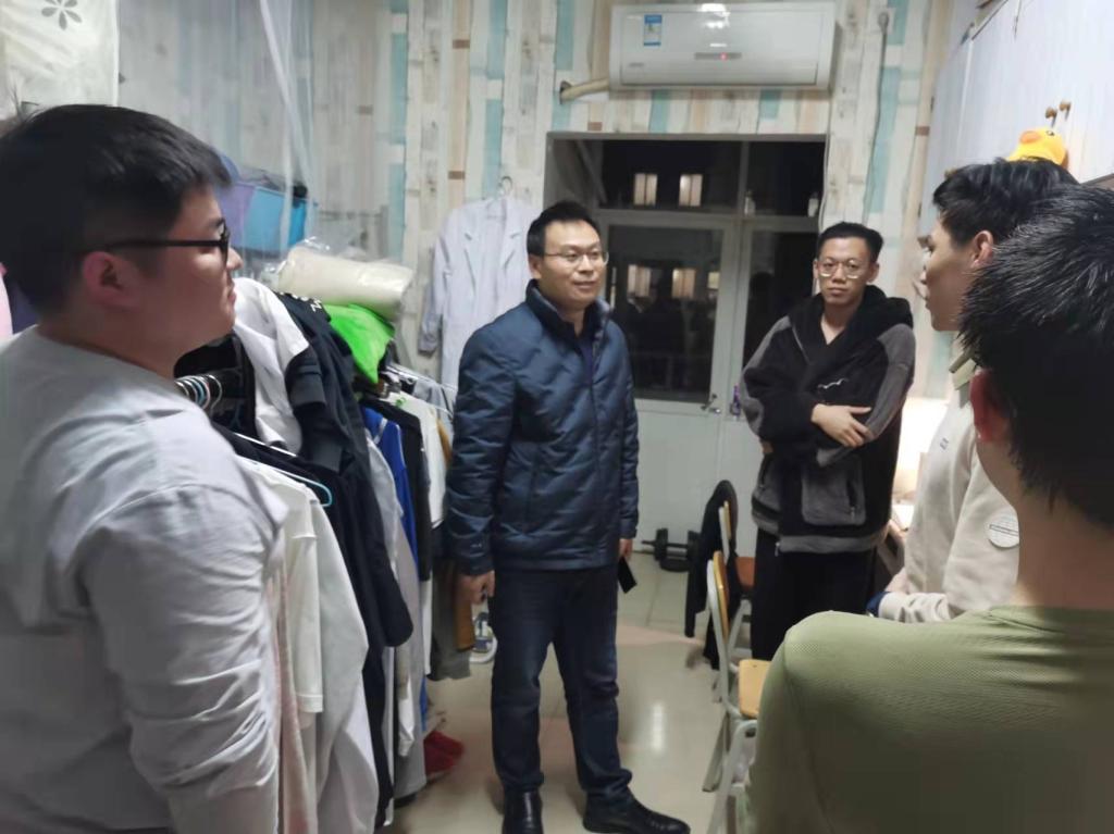 118日,食品学院领导及老师走访2018级毕业班宿舍,重点了解毕业班宿舍安全问题、文明创建工作、毕业生考研复习情况及就业困难、学业问题重点学生情况。学院党总支负责人王建辉带队,学院全体辅导员兰贵辉、胡佳佳、熊英参加。