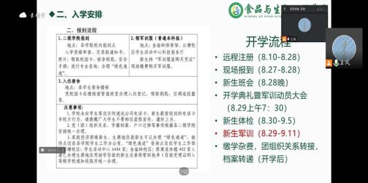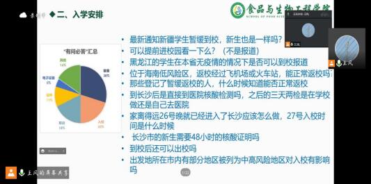 8月21日上午,长沙理工大学食品与生物工程学院22级全体新生线上召开了第一次年级大会,辅导员王凤老师主持。