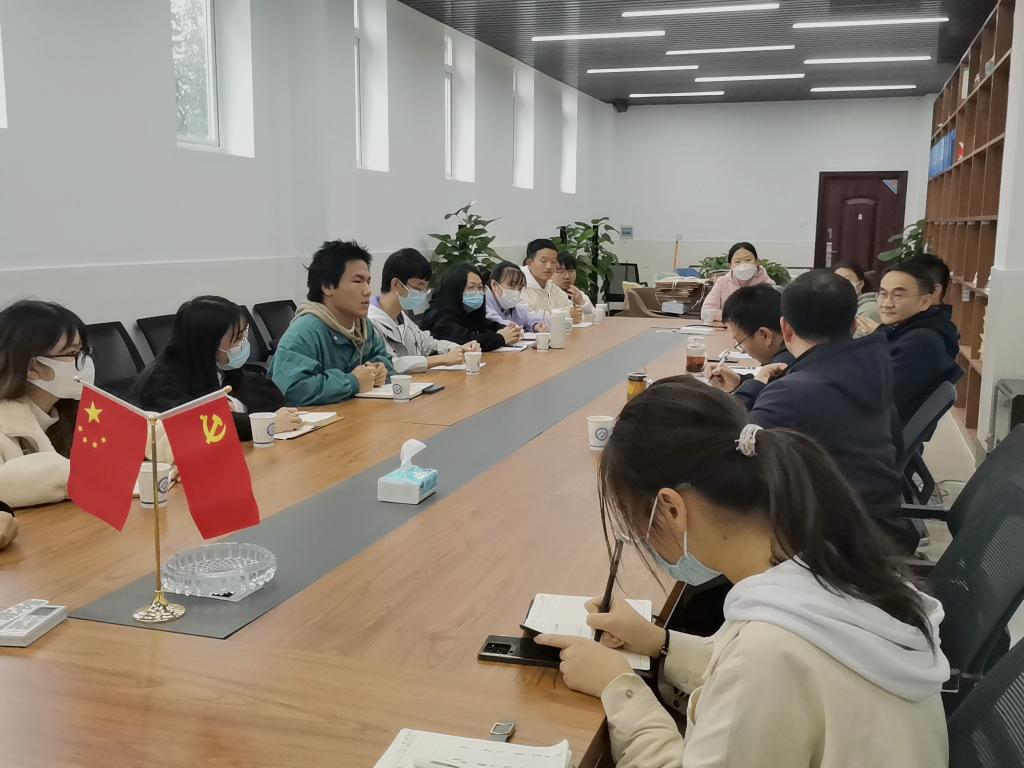 交流会中,各班学生代表就班级同学目前困惑的问题一一展开了叙述,主要围绕宿舍生活、疫情防控、学业规划、就业前景和入党流程等方面进行提问。练黎旋就宿舍生活与日常管理方面进行了解答;方芳与同学们分享了就业实习和课程安排的相关内容;许宙对研究生的课程及学习方面给予了答复;王建辉针对校园核酸检测点的安排及入党标准进行了详细的讲解,同时传达了学校及学院对同学们未来发展的支持与期待。