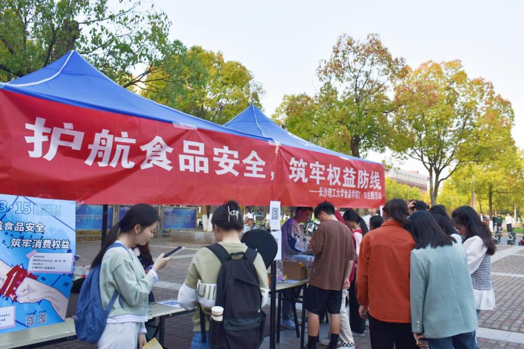 3月15日,长沙理工大学食品学院联合食品营养协会于汀香前坪开展了“护航食品安全,筑牢权益防线”3·15国际消费者权益日主题活动,各学院的三百余名同学积极参与活动。