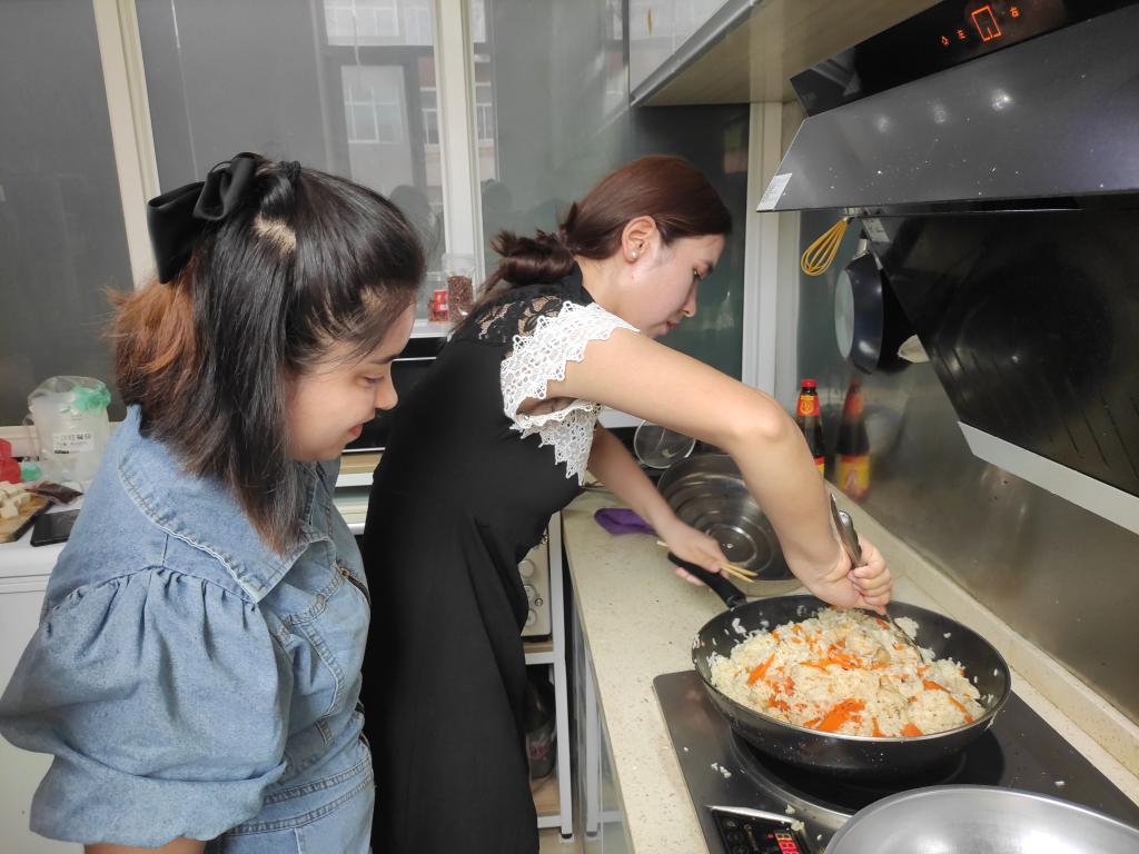 王建辉书记注意到了校内外清真餐种类较少的现实情况,考虑到少数民族同学同样存在多样饮食的需求,特别邀请少数民族同学们来到味型创新中心,尽情发挥创造力、施展厨艺,最大限度发挥味型创新中心的作用,改善少数民族同学的伙食。一时间,味型创新中心烟火气弥漫,飘香味扑鼻,刀工熟练,调味恰当,颠锅翻炒,小火煨汤,美食出锅,垂涎欲滴,气勃郁以扬布,香飞散而远传。