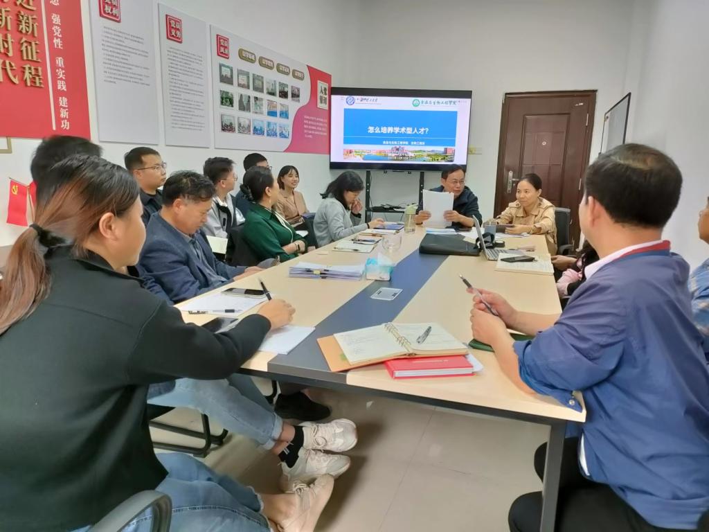 根据学校和学院的统一安排,2023年10月10日下午,我院生物工程系在工科三号楼A324开展了《长沙理工大学办学定位、人才培养目标、服务面向和发展目标》专题学习活动,活动由系主任陈永发主持,全体教师参加。
