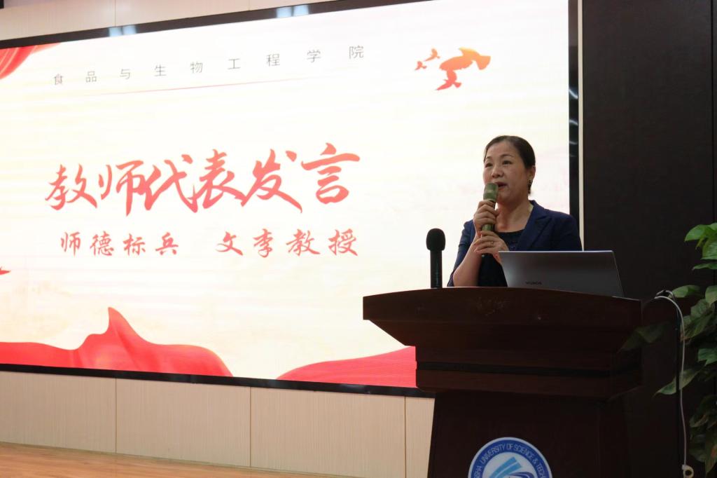 长沙理工大学“2020-2021年度师德标兵”文李教授作为教师代表发言,期待新同学们不仅要勤学苦练,学好专业知识,也要适应大学学习生活,早日独立,更要心怀感恩,身怀绝技,通过四年艰苦卓绝的努力,将自己培养成祖国需要的创新型人才,昂首挺胸走出校园,去广阔的天地施展才华。