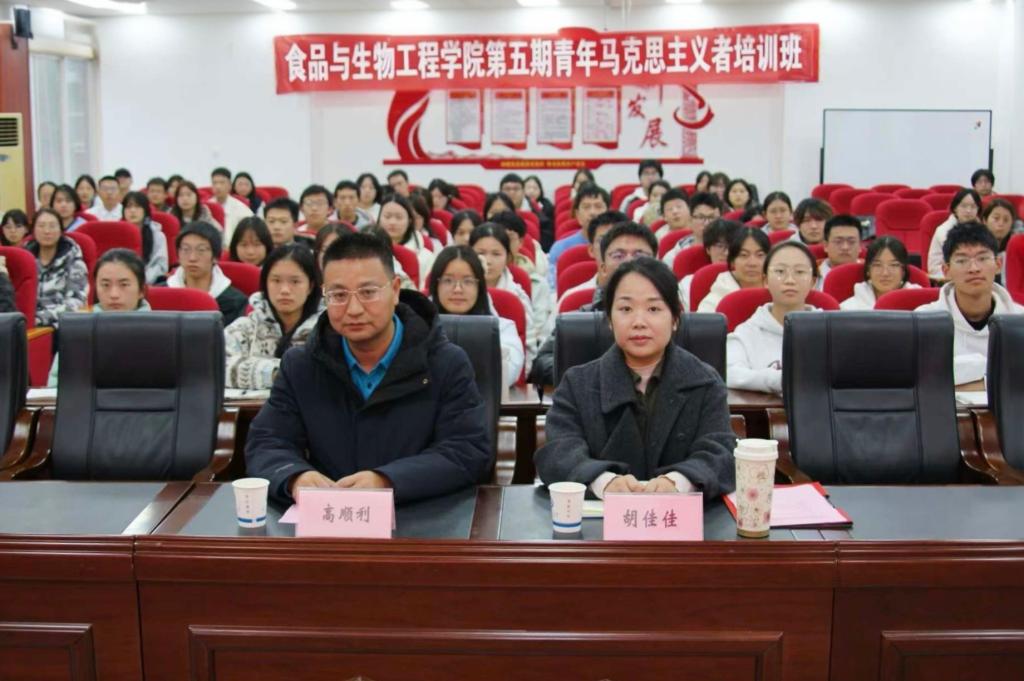 为筑牢青年学子理想信念根基,引导青年勇担时代使命,食品学院于12月23日在工科三号楼A320举行第五期青年马克思主义者培养工程开班仪式暨第一次授课。学院党委书记高顺利、团委书记胡佳佳出席本次仪式。