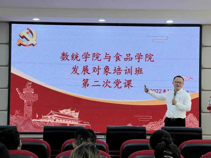 10月25日下午,食品学院第十七期发展对象培训班第二次党课于理科楼A320举行,由长沙理工大学法学院党总支副书记汪功伟主讲。