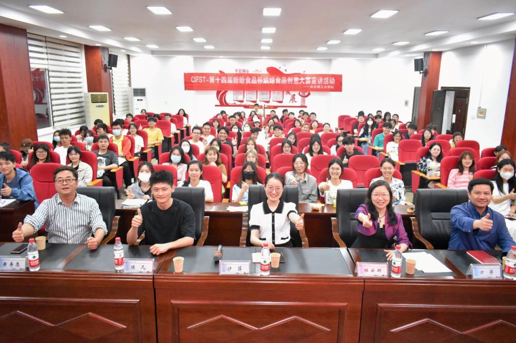 5月9日晚19:00,第十四届盼盼食品杯烘焙食品创意大赛宣讲活动于长沙理工大学云塘校区工科三号楼A320会议室举行。出席此次宣讲活动的嘉宾和老师有中国食品科学技术学会学术与创新部项目副主管、《中国食品学报》编辑沙菲,盼盼食品集团品牌推广主管陈凡,食品与生物工程学院院长程云辉、副院长方芳,《食品与机械》杂志社社长兼主编黄寿恩及大赛指导老师代表。本次活动由食品与生物工程学院创新创业部成员周慧灵主持。