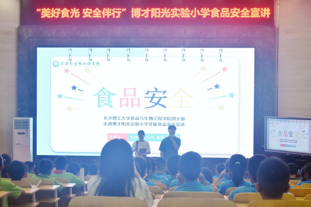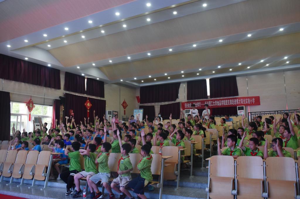 6月16日,博才阳光实验小学活动室内百余名学生争相举手抢答。当天,长沙理工大学食品学院生物2002班团支部到此,为小朋友们带来了一场生动有趣的食品安全知识宣讲活动。