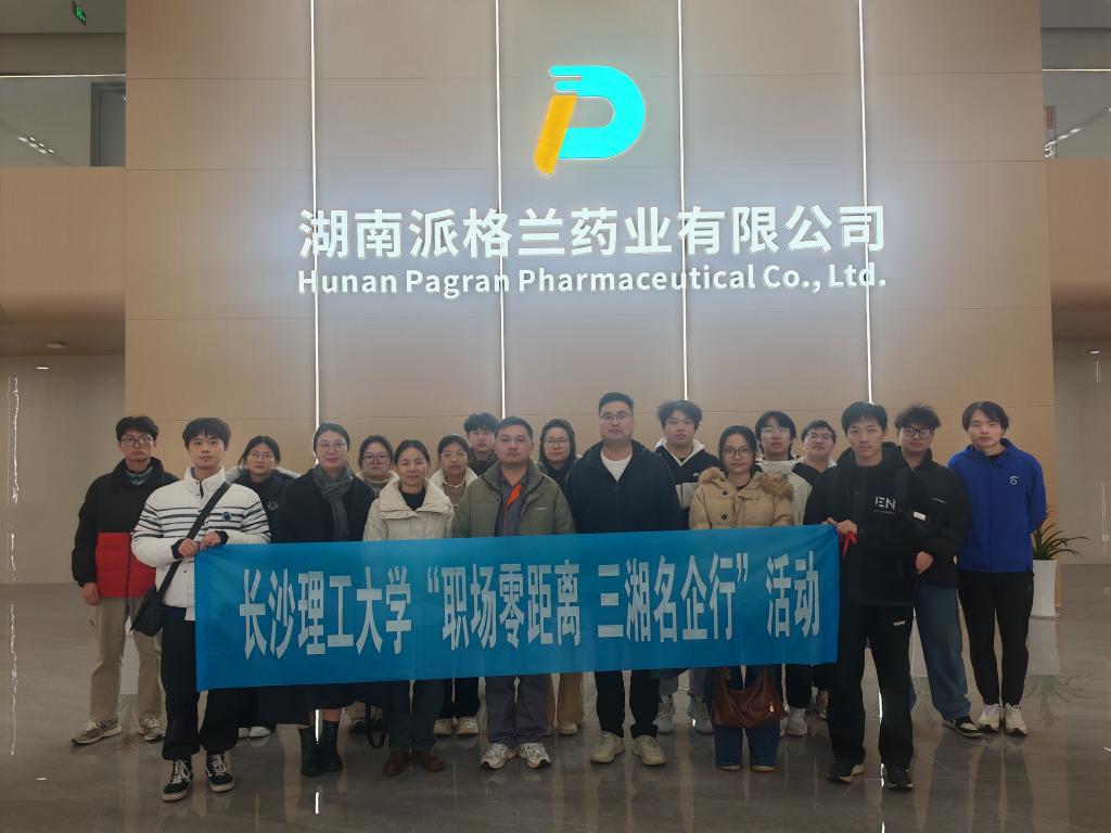 为深化校企协同育人机制,拓宽学生就业实习渠道,1月19日上午,食品学院联合化学学院,组织20余名师生走进湖南派格兰药业,开展访企拓岗暨“职场零距离,三湘名企行”主题活动,让师生沉浸式感受企业氛围、洞察行业发展脉搏。