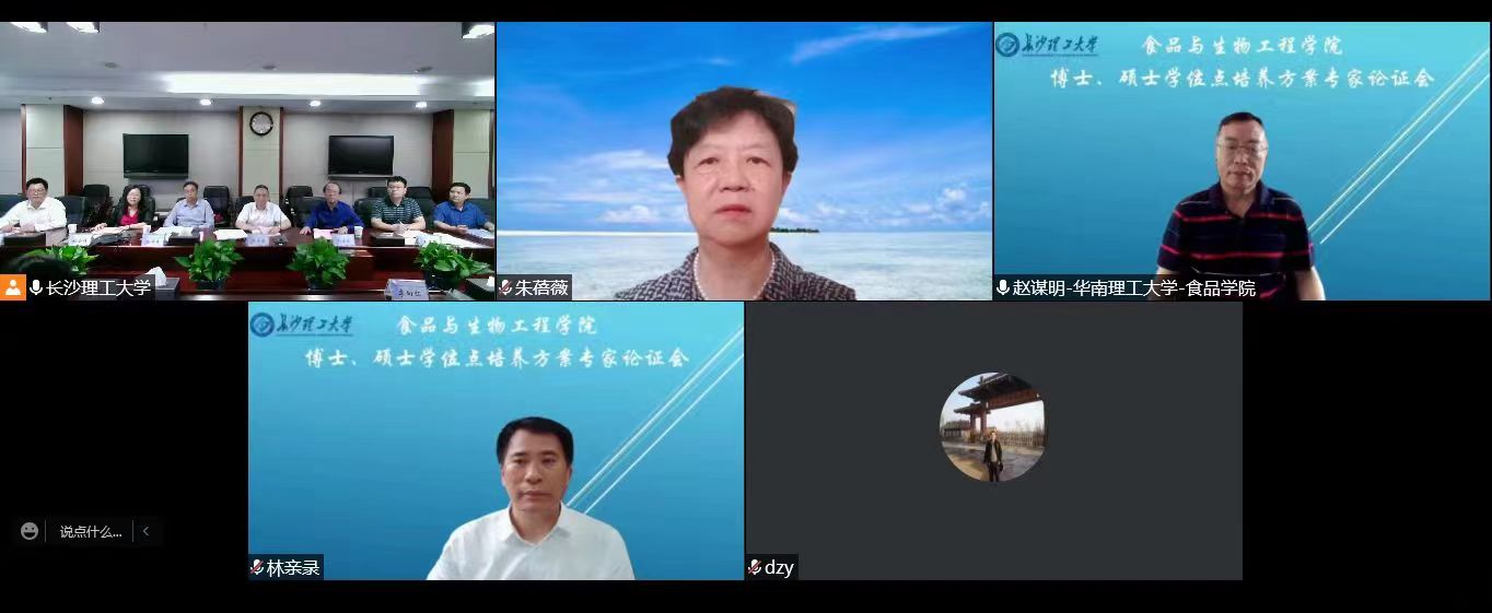 2022年5月31日下午,长沙理工大学食品与生物工程学院博士、硕士学位点培养方案专家论证会在长沙理工大学云塘校区一办公楼第三会议室顺利召开。会议采取“线上+线下”相结合的方式进行。出席此次会议的校外专家有大连工业大学朱蓓薇院士(国务院学位委员会学科评议组成员)、华南理工大学赵谋明教授(国务院学位委员会学科评议组成员)、中南林业科技大学林亲录教授(食品科学与工程学院院长)和澳优乳业股份有限公司中国区副总裁戴智勇高级工程师(研究院院长),校内领导与专家有副校长胡永乐、研究生院院长杨华峰、食品科学与工程学科带头人刘永乐教授、生物与医药(领域)学位点负责人程云辉教授、食品与生物工程学院王建辉书记、许宙和方芳副院长及学院教授委员会和学位评定分委员会全体成员。