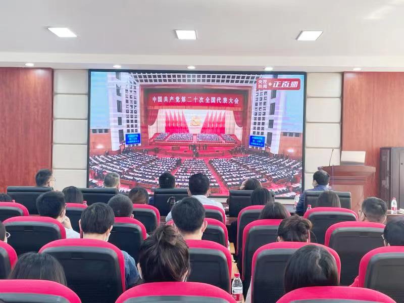 10月16日上午10时,中国共产党第二十次全国代表大会开开幕会在北京人民大会堂隆重召开。食品学院组织全院师生在工三楼A320集中收看党的二十大开幕盛况,认真聆听习近平总书记代表十九届中央委员会所作的报告,学院领导班子、全体教工党员及学生党员代表共134人参加。