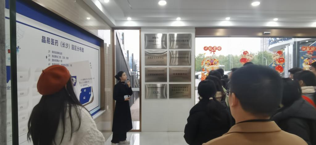 为进一步加强和巩固校企合作,拓宽学生就业实习渠道,1月8日下午,化学学院和食品学院携手走进晶易医药,联合开展访企拓岗暨“职场零距离,三湘名企行”活动,30多名师生在企业园区现场参观游学、感受行业脉搏。