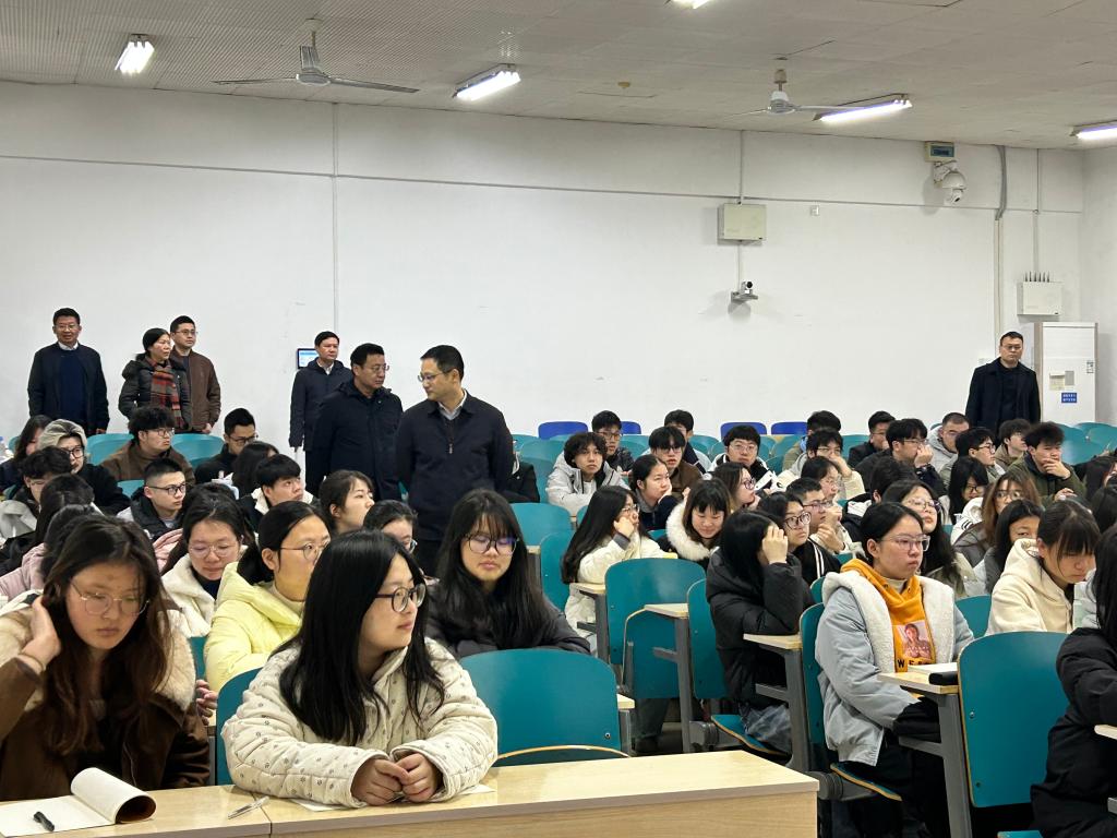 春意渐浓,学期伊始。为全面掌握课堂教学实况,保障2026年春季学期教学工作平稳有序运行,3月9日上午8点,联系校领导陈杰副校长带领食品与生物工程学院党委书记高顺利、院长王建辉及全体班子成员和教务办、学工办负责人,深入云塘校区教学一线,对开学首日的教学秩序进行“全覆盖”式巡查。