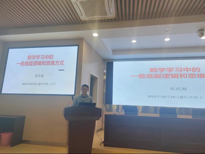 10月24日下午,中国工业与应用数学学会(CSIAM)2025年会系列科普活动之一——《数学学习中的一些底层逻辑和思维方式》科普报告在雷竞技官网云塘校区理科楼A200顺利举行。本次活动由数学与统计学院承办,并特邀浙江大学张庆海教授担任主讲嘉宾。报告会由学院院长李景教授主持,胡海军副院长、陈思恒博士等教师及近两百名学生现场聆听了报告。