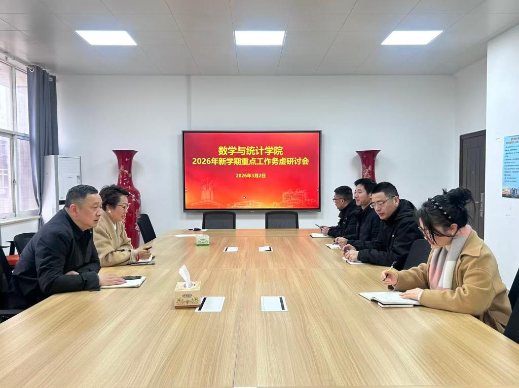 3月2日上午,数统学院2026年新学期重点工作务虚研讨会在理科楼A410召开。会议由院长李景主持,学院领导班子全体成员出席会议。