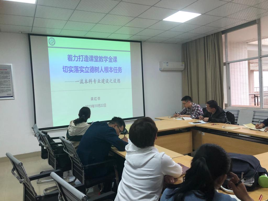 10月22日下午,信息与计算科学党支部在理科楼A502开展了党课学习,在“立德树人担使命,教育为民履职责”主题教育背景下,数学与统计学院副院长龚红仿同志给支部全体党员讲了题为“着力打造课堂教学金课,切实落实立德树人根本任务”的主题党课。
