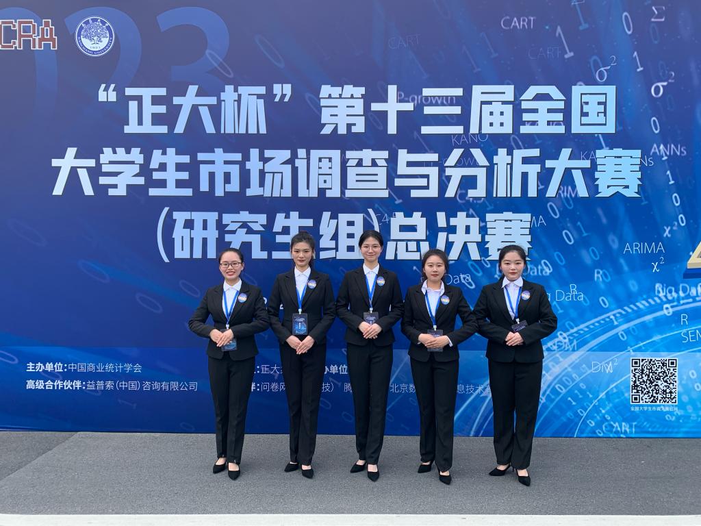 全国大学生市场调查与分析大赛是面向海峡两岸暨港澳大学生的一项公益性专业赛事。大赛旨在引导大学生创新和实践,提高大学生的组织划、调查实施和数据处理与分析等专业实战能力,培养学生的社会责任感、服务意识、市场敏锐度和团队协作精神。全国大学生市场调查与分析大赛由中国商业统计学会2010年创办,自2019年以来,已连续五年入选中国高等教育学会的《全国普通高校学科竞赛榜单》。本届大赛从2022年9月启动,历时7个月,经过校赛、企业命题赛、省赛的层层选拔,优中选优,从354所学校,2.8万多名学生(研究生组)中评选出151支团队,696名学生(占研究生组参赛学生人数的2.5%)入围全国总决赛,角逐总决赛的等级奖项和冠、亚、季军。