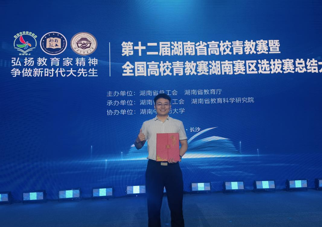 6月24日,第十二届湖南省高校青年教师教学竞赛暨全国高校青年教师教学竞赛湖南赛区选拔赛在湖南中医药大学落幕,我院青年教师赵勇荣获理科组一等奖,并摘取由湖南省教育厅和湖南省教育工会共同授予的“湖南省教学能手”荣誉称号。
