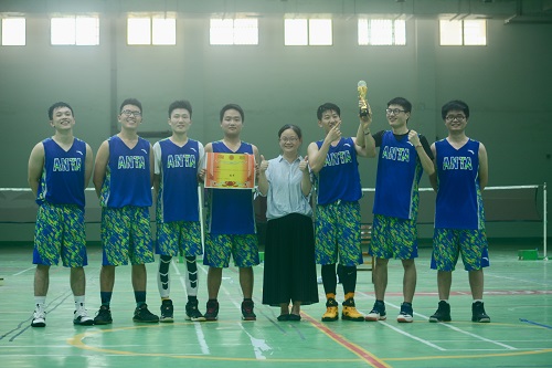 最后,颁奖环节。由数统学院学工办老师肖凤、柳映堂为两支队伍分别颁奖并进行合影留念。本届“极限杯”篮球赛圆满结束。通过此次篮球比赛,不仅丰富了同学们的业余生活,更提升了同学们的团结和凝聚力。活动达到了应有的效果。