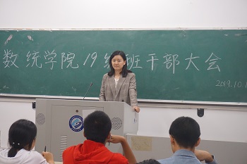 10月12日,数统学院于金盆岭校区13教104教室召开19级班委会议,本次会议由院党委副书记马丽主持,19级辅导员崔培东以及各班班干部参加。