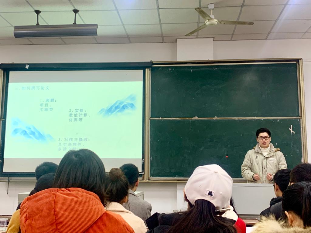 首先,苏仁礼同学给大家介绍了国奖评选标准以及一些学习方法,同时针对就业也给大家分享了很多建议。然后,杨孪山同学向大家介绍了自己和自己的科研成果。对于科研,他认为要沿着导师方向多读文献,同时提出了很多论文写作的建议。在进行课题研究时,他建议多和导师沟通,和同学交流探讨,遇到困难应该直面解决而不是逃避。接着,温石刚同学给大家展示了他的科研成果,并且向大家介绍了他的研究生生活,他还在如何写好英文论文方面分享了自己的小技巧。嘉宾分享后,观众进行了积极的提问。
