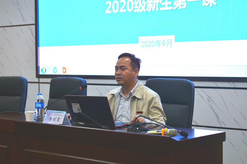 最后,院长黄创霞教授为同学们讲述新生第一课。他指出创新是发展的第一动力,新生们应成就自我、树立理想,成为时代的引领者、接班人。并向同学们详细介绍学院的创建历史、人才培养、教学资源、学科建设及科研成果等情况。他还提醒同学们莫要辜负时代赋予的美好生活,勇于担当使命,无愧于自身,不负青春,学有所成。
