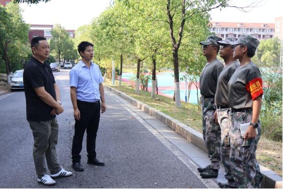 彭峥、张潇腾也纷纷走到学员队伍中,为学员们加油打气,送上贴心的关怀和鼓励。希望我院民兵连学员在训练中牢记嘱托,以更加坚定的信念、更加饱满的热情、更加昂扬的斗志,全身心投入到军训中,充分展现我院学子的青春风采。