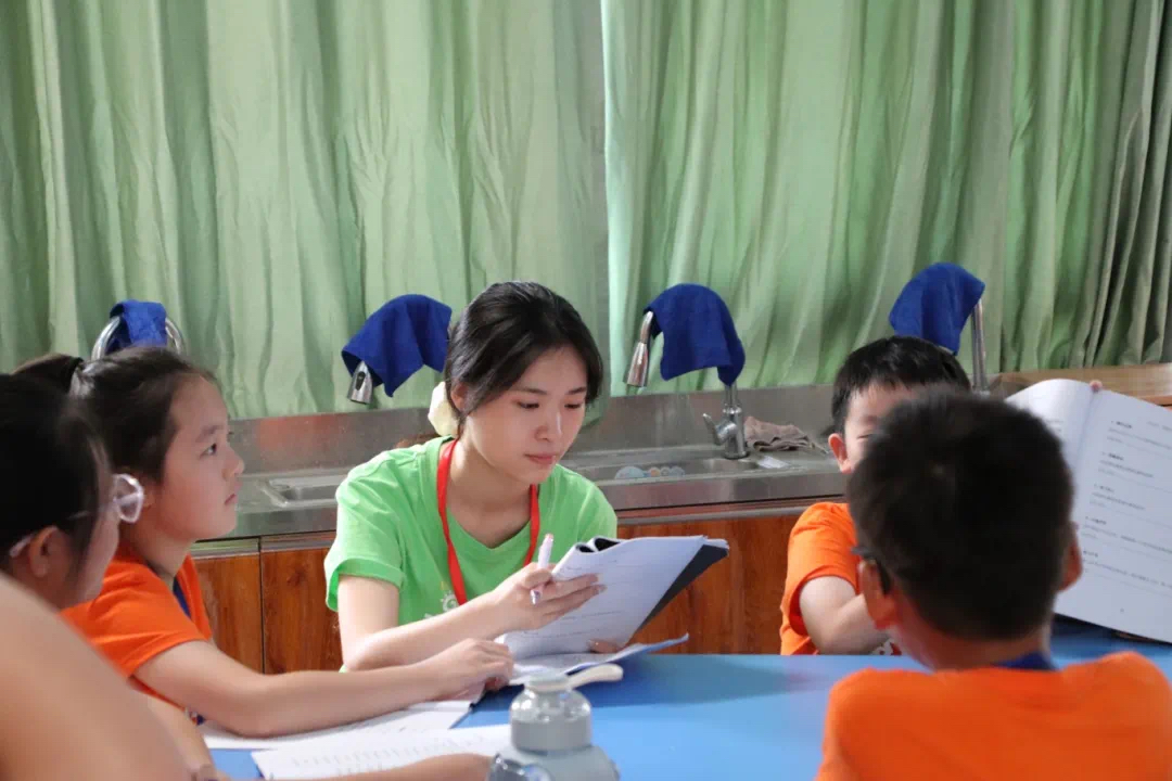 与此同时,志愿者们也在这里收获着别样的成长。公益营不仅为他们提供了服务与奉献的机会,也让他们在与孩子们的相处中收获了更多关于关爱与责任的思考。午间休憩时,他们或是和孩子们一起嬉闹玩耍,或是与同伴们小憩聊天,年轻人特有的朝气与活力在营地里彼此交融,亦师亦友的陪伴也让这个夏天有着别样的温暖。
