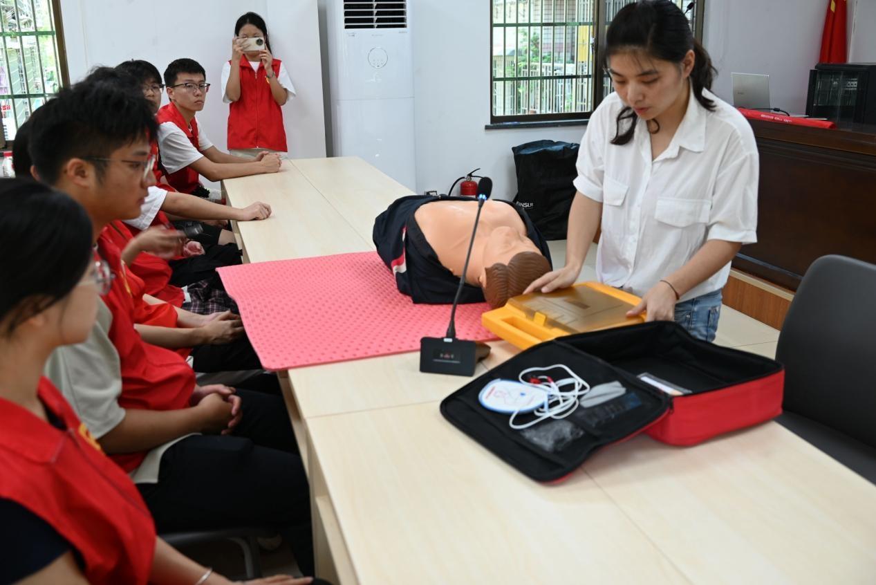为深入践行“三下乡”社会实践精神,学习应对心脑血管疾病突发时的急救措施,6月30日,长沙理工大学数学与统计学院“数智健心”团队在长沙市雨花区洞井街道融合社区联合社区工作人员开展了心肺复苏急救培训。培训以“应对心脑危机,复苏点燃生机”为主题,通过宣讲心肺复苏的流程和AED的使用方法以及实际操作,为社区居民尤其是老年人带来一场干货满满、意义非凡的生命急救知识盛宴。