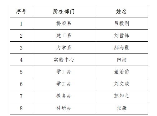 根据《长沙理工大学土木工程学院“九象教育奖学金”评选细则》精神,经教师本人提出申请、学院组织评审、院党政联席会审定,现将评选出的8名教师予以公示,名单如下(排名不分先后):