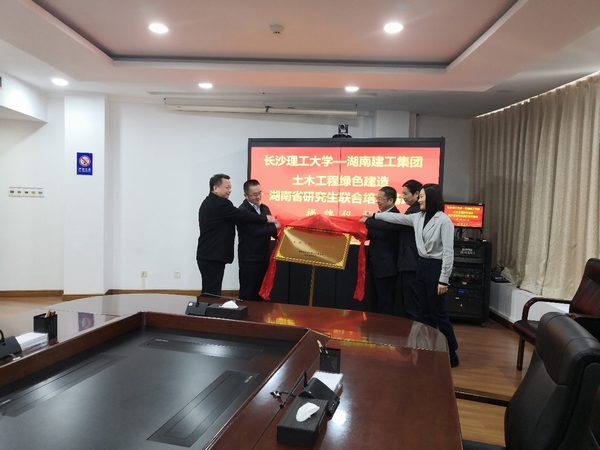 2021年12月20日,“长沙理工大学-湖南建工集团有限公司土木工程绿色建造研究生联合培养基地”授牌仪式在湖南建工集团大楼隆重举行。长沙理工大学党委委员、副校长胡永乐,长沙理工大学原副校长杨伟军,湖南建工集团专职党委副书记、董事陈克军,湖南建工集团党委委员、董事、副总经理陈浩,以及长沙理工大学研究生院、土木工程学院,湖南建工集团人力资源部、安质应急部、技术成控部、总承包公司人力资源部相关人员出席了会议。