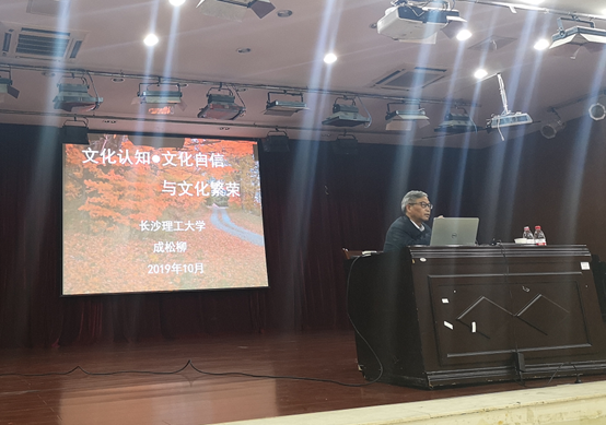 根据长沙理工大学“不忘初心、牢记使命”主题教育“理论超市”专家宣讲安排,10月22日下午,成松柳教授以《文化认知·文化自信与文化繁荣》为主题,在文科楼B204进行宣讲。来自体育学院、文法学院、图书馆教职工及学生党员,共计200余人听取了本次讲座。文法学院党委书记孔伟红主持会议。