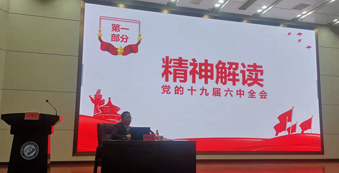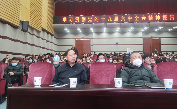 12月14日下午14:30,副校长胡永乐在图书馆学术报告厅为体育学院和汽机学院作党的十九届六中全会精神宣讲,体育学院和汽机学院全体教职员工及学生代表参加了宣讲会。