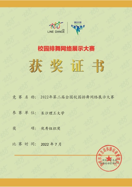 “以赛促练,以赛促培”积极参与全国赛事不仅是检验“排舞”项目的阶段性成果之一,更是加强教师之间、学生之间交流学习的重要举措。在今年的6月,雷竞技官网组织了近1500人进行统一训练,在全国排舞大课间比赛中,获得全国高校组特等奖。并被大赛组委会评为优秀组织奖和优秀推广奖单位。
