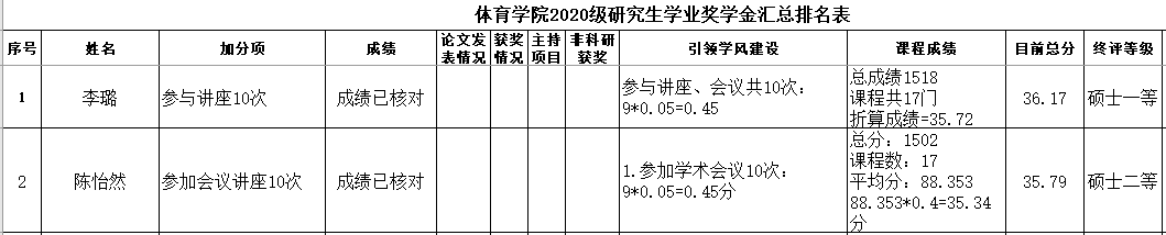 公示期2021年10月14日-2021年10月18日下午17:00,对公示名单有意见的单位或个人可以在公示期间向体育学院研究生奖学金评审委员会以书面形式反映,要求反映的情况属实、实名反映。联系电话:85258276。