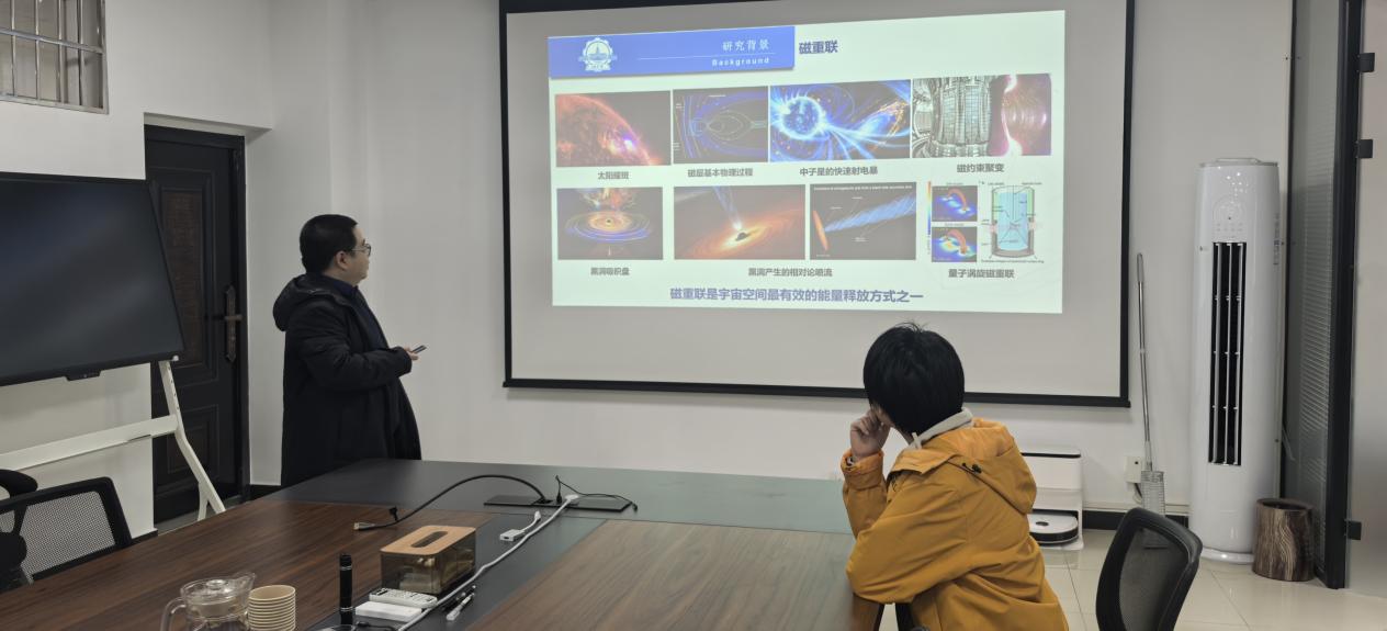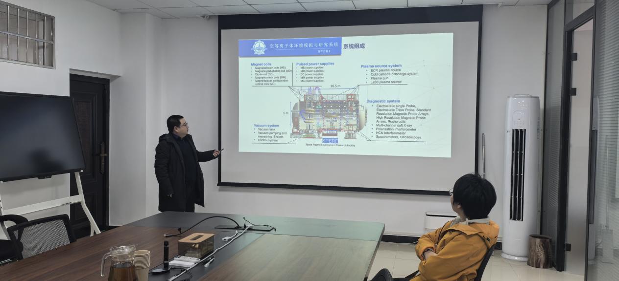 杨肖易副教授在报告中系统介绍了空间等离子体环境模拟与研究系统的整体架构,重点阐述了真空子系统、磁体子系统与等离子体源子系统的基本构成与运行机理。报告进一步剖析了该系统如何为模拟地球辐射带的关键物理环境提供关键技术支撑,并详细说明了其在等离子体产生与诊断、信号控制与采集等方面所实现的基础功能。