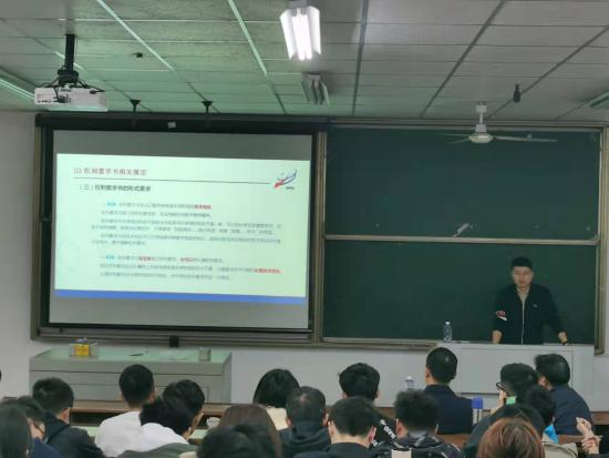 会上,谢林明从“专利申请概述”“不予保护的客体”“权利要求相关规定”和“说明书相关规定”四个方面展开论述。他向同学们讲解了长沙理工大学近年来专利申请情况,并详细阐述了专利权特征、专利种类、获得专利权的条件和专利申请审批流程。此外,他还结合实际案例,对于“申请权的归属问题”进行了说明。现场互动环节,同学们踊跃参与,积极说出自己的观点。讲座现场气氛热烈,掌声迭起。