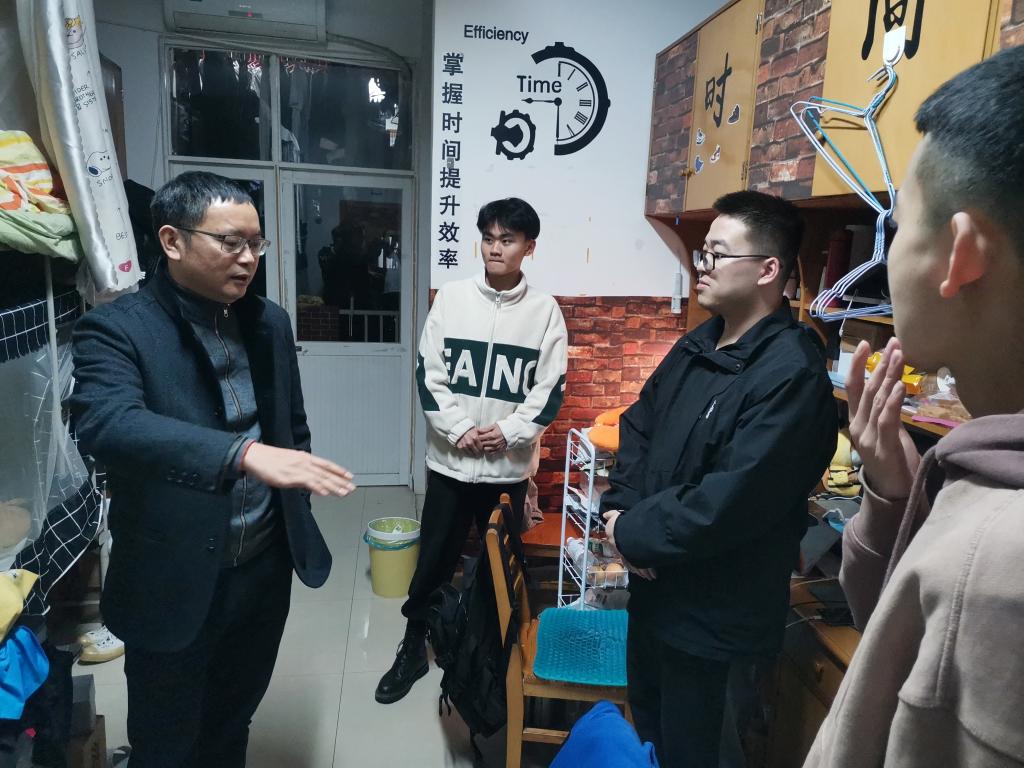 天气乍凉,温度骤降, 1129日晚,物电学院党委书记张国强走访慰问了学生宿舍,学院年级辅导员、班主任一并参加。