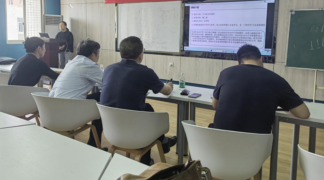 为深入贯彻落实习近平总书记关于研究生教育的重要论述,推进学校“双主体”协同发展战略,提升学校研究生教育质量,我院积极响应第二届长沙理工大学研究生课程思政课堂教学大赛暨第二届湖南省研究生课程思政课堂教学大赛校内选拔赛,于2024年5月23日下午在理科楼C509开展了院级初赛。本次比赛参加评审工作的评委有唐立军教授、邓科教授、鲁耿彪副教授和李茜副教授,参赛老师有电子系和物理系分别推选出的王成志老师与吴丽娟老师。