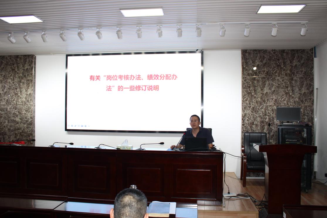 党委书记张国强作了重要讲话,他全面总结了学院上半年的各方面工作,强调两个暂行《办法》旨在加强学院内部治理,形成长效的激励机制,推动学院高质量发展。他指出本年度时间已经过去了大半,学院各方面工作离学校党委对我院的要求还有很大差距,全院教师要以学院发展为重,潜心教学,爱岗敬业,扎实工作,尤其是在科研工作方面要有大的突破,为学院的发展做出了各自的贡献。最后,大会举手通过了上述两个文件。