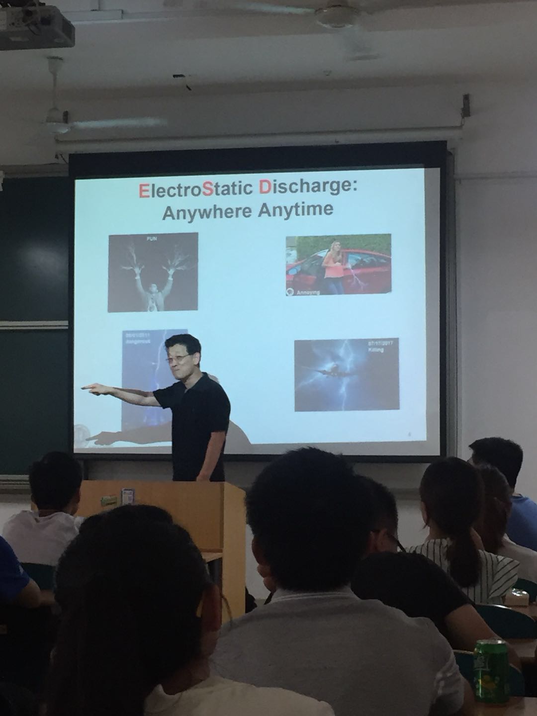 报告会上,邹望辉老师首先向我们简单介绍了ESD,以及静电防护与我们日常生活的密切关系,从而引出Albert Wang教授的精彩讲座。Albert Wang教授对IC的ESD保护设计进行了全面的历史回顾,并详细介绍了现在的发展和未来的前景。报告涵盖了ESD保护基础和基础知识、现有ESD保护解决方案、当前ESD保护设计和ESD-IC协同设计技术,新兴的全芯片ESD保护设计验证CAD方法以及未来的ESD保护概念等知识点。将近两个小时的讲座,Albert Wang教授用其丰富的知识和幽默的语言让在场所有人对IC设计、ESD等知识有了更深入的了解,大家都获益匪浅。