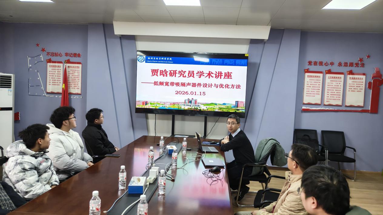 2026年1月15日下午,学院邀请中国科学院声学研究所贾晗研究员在理科楼C507作题为《低频宽带吸隔声器件设计与优化方法》的学术报告。本次报告由邓科教授主持,吸引了本院师生踊跃参与。