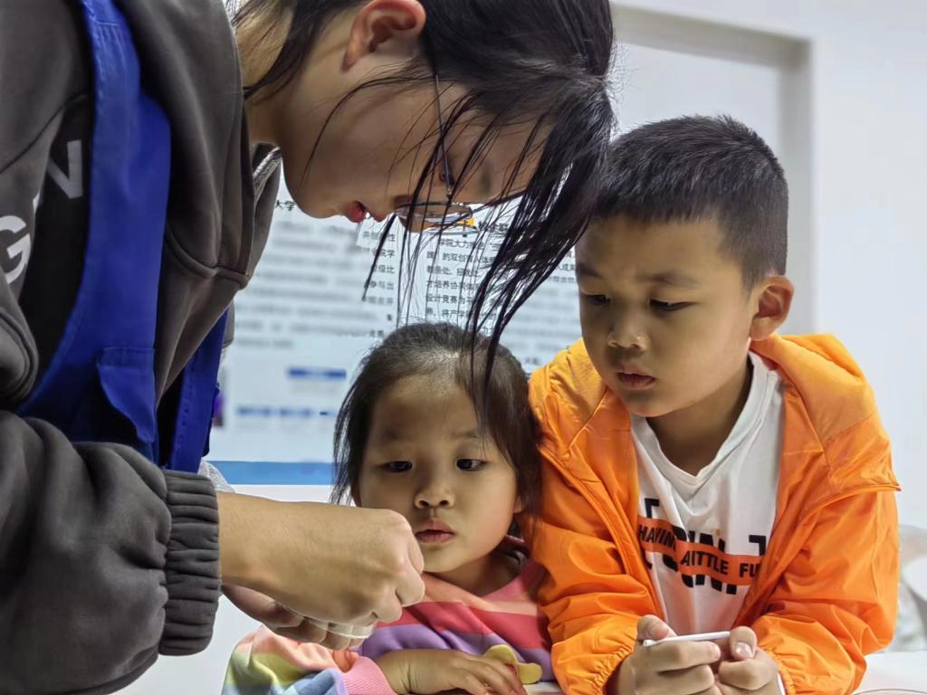 为使广大教职工在假期安心科研和工作,解决他们的后顾之忧,物电学院党委决定充分发挥学院优势,利用自身特色举行“爱心托管”,为老师们服好务。由学院学工办组织的“小小科学家”团队每年暑假都会走向社会为假期的留守儿童送去丰富的精神食粮,深受孩子们的喜爱。于是,学院合理安排团队中的大学生志愿者们利用课余时间行动起来,也为国庆假期中学校教职工的孩子们带来不一样的体验和快乐。五天时间学院共举办了3场“小小科学家,一起动起来”的互动课堂,孩子们在课堂上认真地听大哥哥大姐姐们讲解科学故事,在这些“哥哥姐姐”的指导下,孩子们听课非常认真,动手做起实验体验到知识的魔力和魅力,教室中不时传来惊讶声和欢快的笑声。