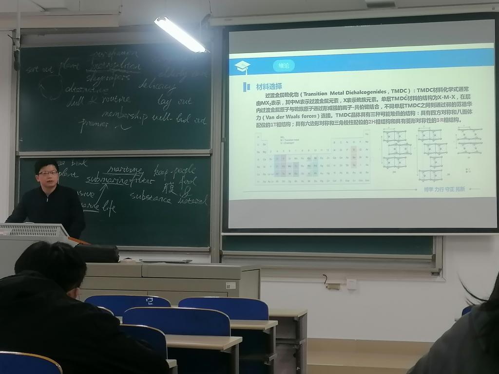 听完之后,同学们都感受到博士在这个领域浓厚的知识底蕴,大家激情澎湃,自发响起阵阵热烈掌声。在提问答疑环节,大家依次提出了自己的疑惑,博士也耐心的为大家一一解答,加深大家对本次讲座知识的理解。这次讲座激发了同学们对二维过渡金属硫化物柔性热电/湿气发电性能研究进展的兴趣,同时大家也学习到了丰富的知识,开拓了视野。