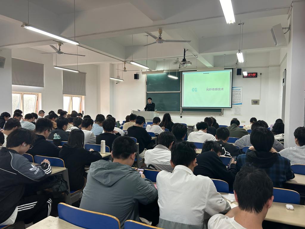 听完之后,同学们都感受到彭博士在这个领域浓厚的知识底蕴,大家激情澎湃自发响起阵阵热烈掌声。提问答疑环节,大家依次提出了自己的疑惑,彭博士也耐心的为大家一一解答,加深大家对本次讲座知识的理解。这次讲座激发了同学们对布里渊光纤传感技术的兴趣,同时大家也学习到了丰富的知识,开拓了视野。