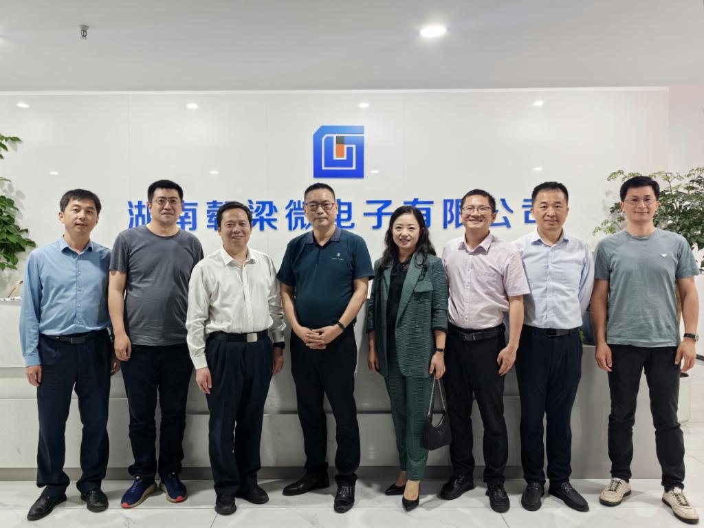 2023年5月25日下午,长沙理工大学研究生院副院长(研工部部长)闾兰、物理与电子科学学院党委书记张国强、副院长(主持工作)张卫兵、电子信息系主任邹望辉一行前往湖南毂梁微电子有限公司调研研究生联合培养情况,并举行了车规电子器件与DSP芯片技术湖南省研究生联合培养基地授牌仪式。湖南毂梁微电子有限公司副总经理杨一艺汪东、陈虎、首席科学家李振涛等公司负责人出席相关活动。