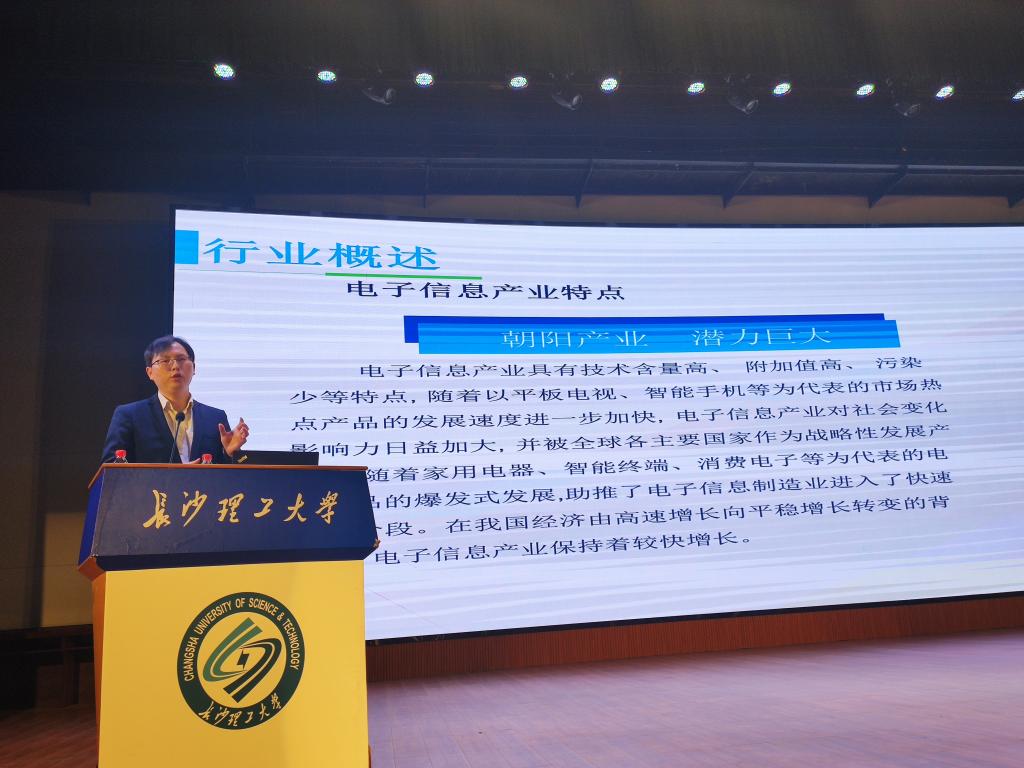 10月21日下午四点,物电学院研究生入学教育之职业导师专题讲座第二场“电子行业情况浅析”在金盆岭校区五教报告厅举行。本次主讲嘉宾为威胜集团有限公司人力资源部HRBP经理兼校企合作经理、长沙市电子电工教研会副理事长彭健。讲座由物电学院副院长刘新海主持,全体研究生参加。